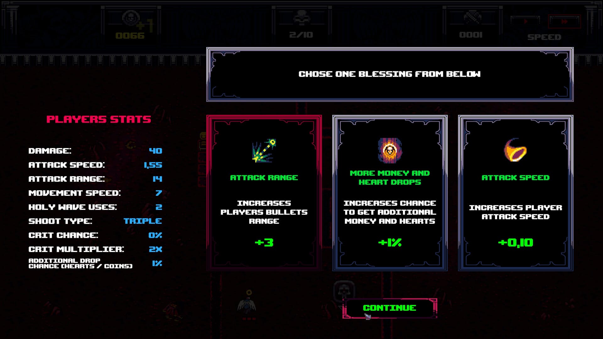 Tower Defense, wo man Türme baut und Verteidigung plant, und Bullet Hell, wo man selbst mitten im Schussgewitter steht und ausweichen muss. Du spielst einen Engel, der das Tor des Himmels gegen die Mächte der Hölle verteidigt und dabei sowohl strategisch klug bauen als auch blitzschnell reagieren muss. Klingt nach Chaos, ist es auch, aber nach einem sehr spaßigen Chaos.